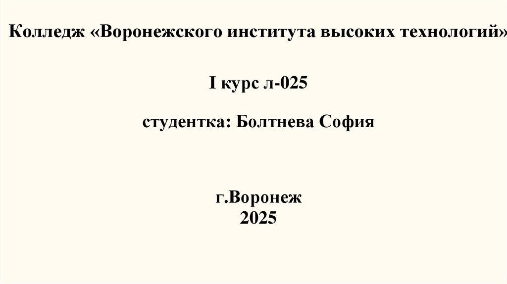 Колледж «Воронежского института высоких технологий»I курс л-025