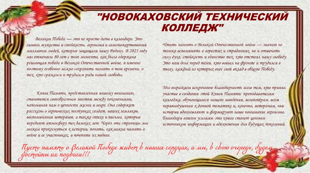 У каждого из нас есть своя Книга Памяти. Это не всегда томик в кожаном переплете. Порой ее