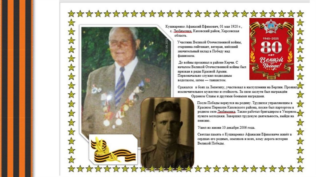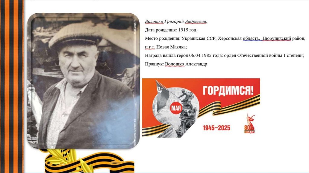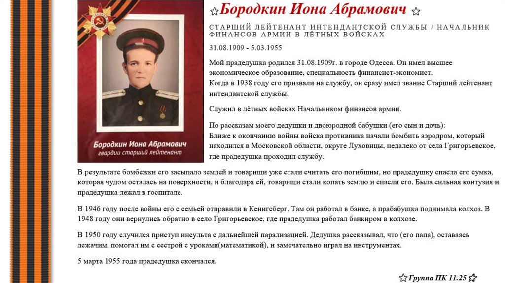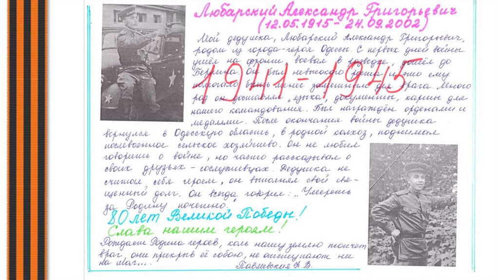 20. Герой Великой Отечечтвенной войны 1941 – 1945 г.г.