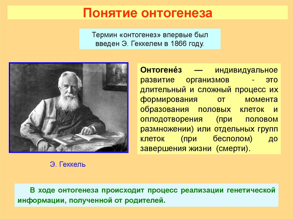 Понятие онтогенезаТермин «онтогенез» впервые был