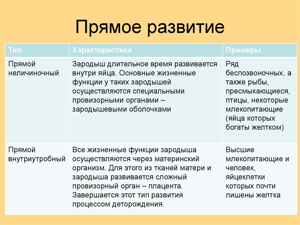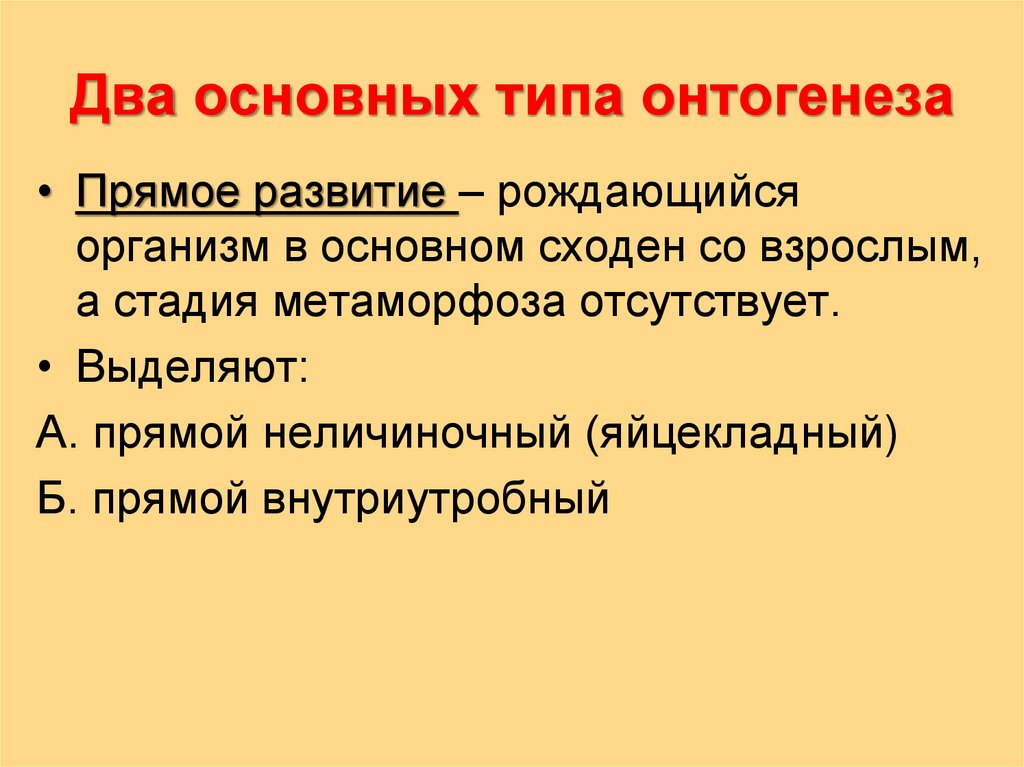 • Прямое развитие – рождающийсяорганизм в основном сходен со взрослым,