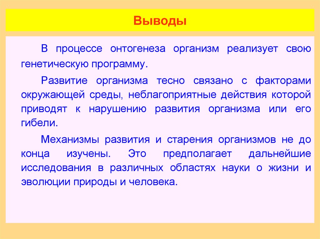 В процессе онтогенеза организм реализует своюгенетическую программу.
