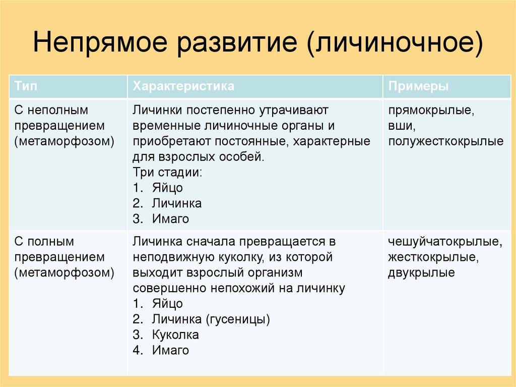 6. Непрямое развитие (личиночное)