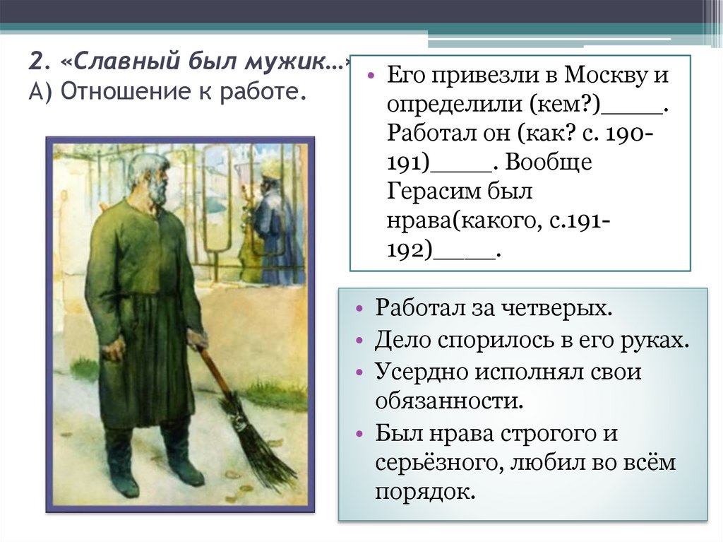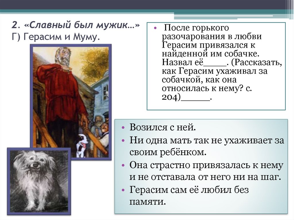 7. 2. «Славный был мужик…» Г) Герасим и Муму.