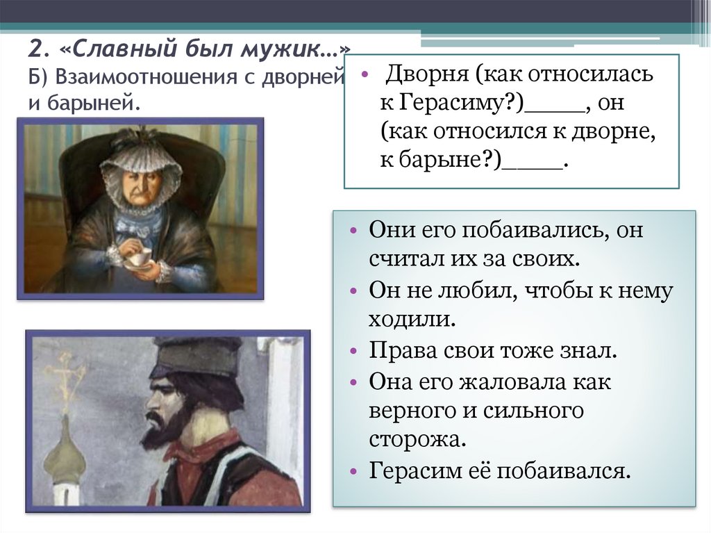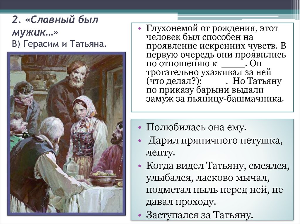 6. 2. «Славный был мужик…» В) Герасим и Татьяна.