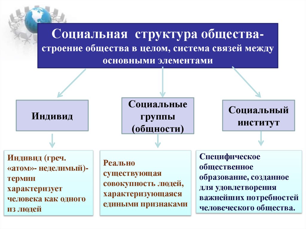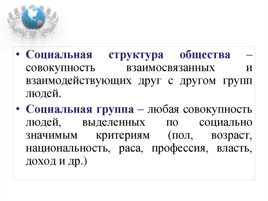 • Социальная структура общества –совокупность