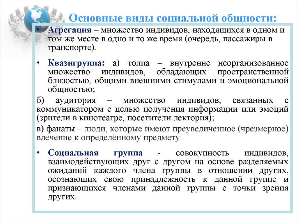 3. Основные виды социальной общности: