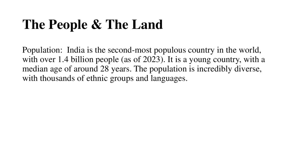 The People & The LandPopulation: India is the second-most populous country in the world,