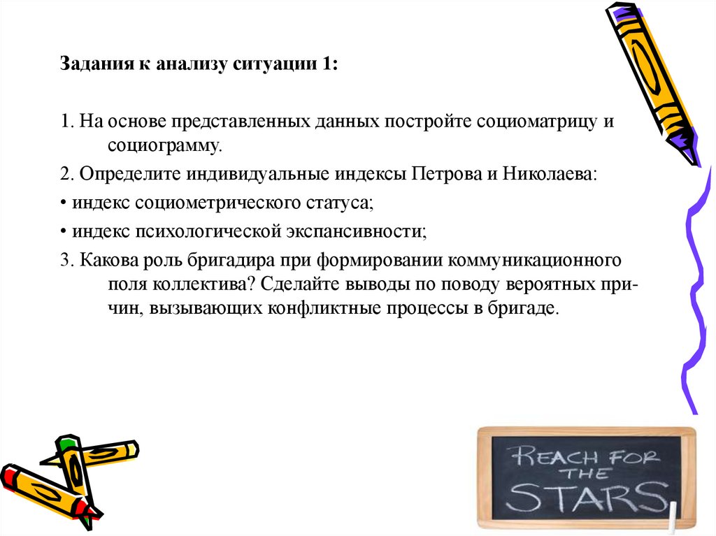 Задания к анализу ситуации 1:1. На основе представленных данных постройте социоматрицу и