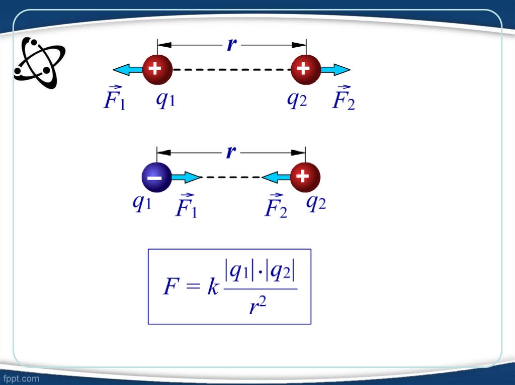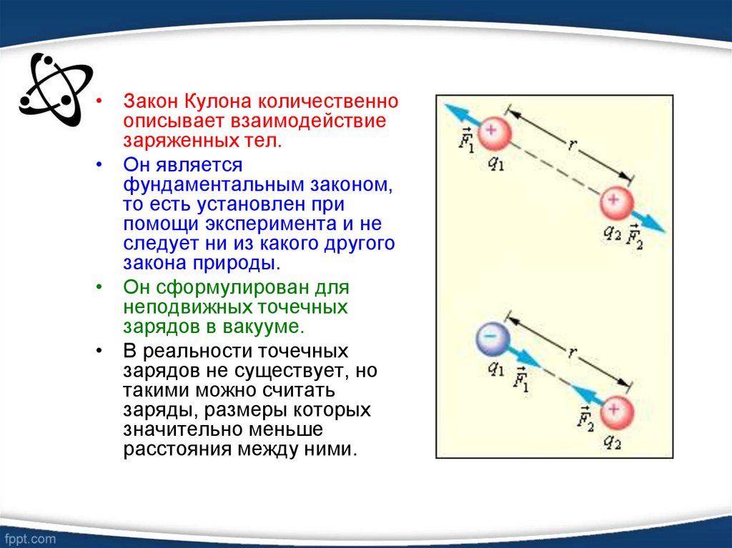 • Закон Кулона количественноописывает взаимодействие
