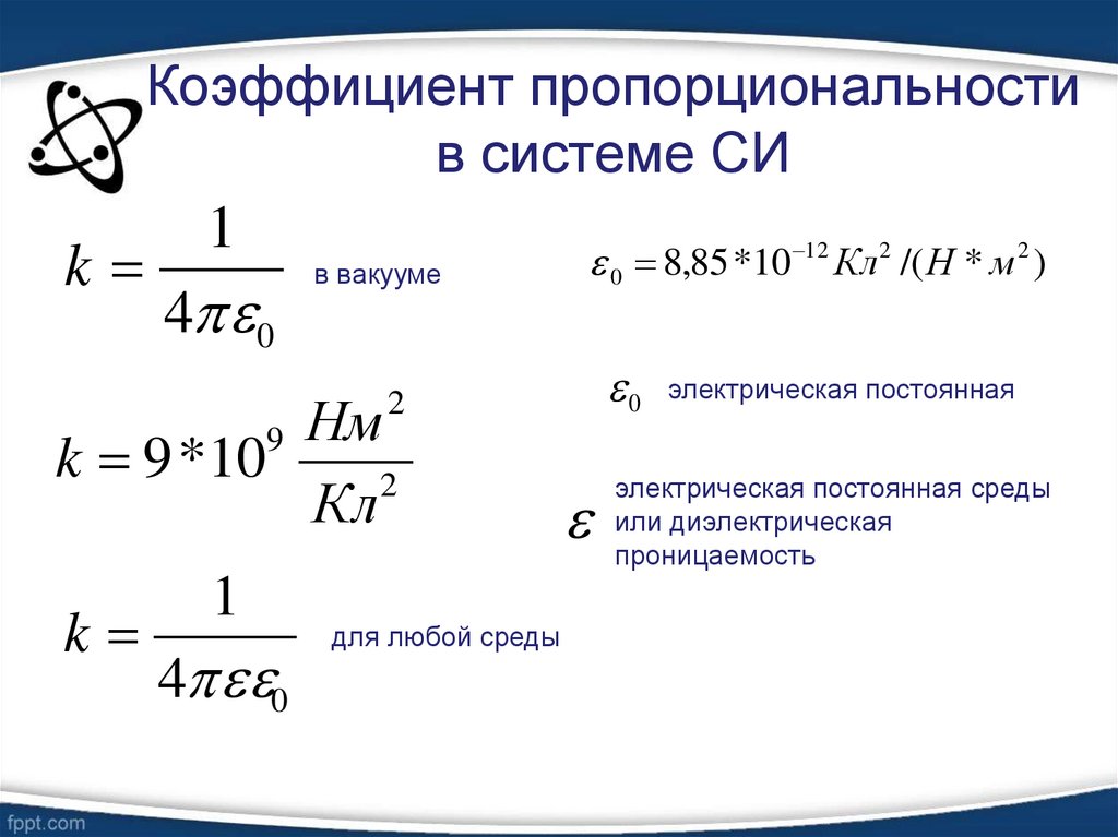 14. Коэффициент пропорциональности в системе СИ
