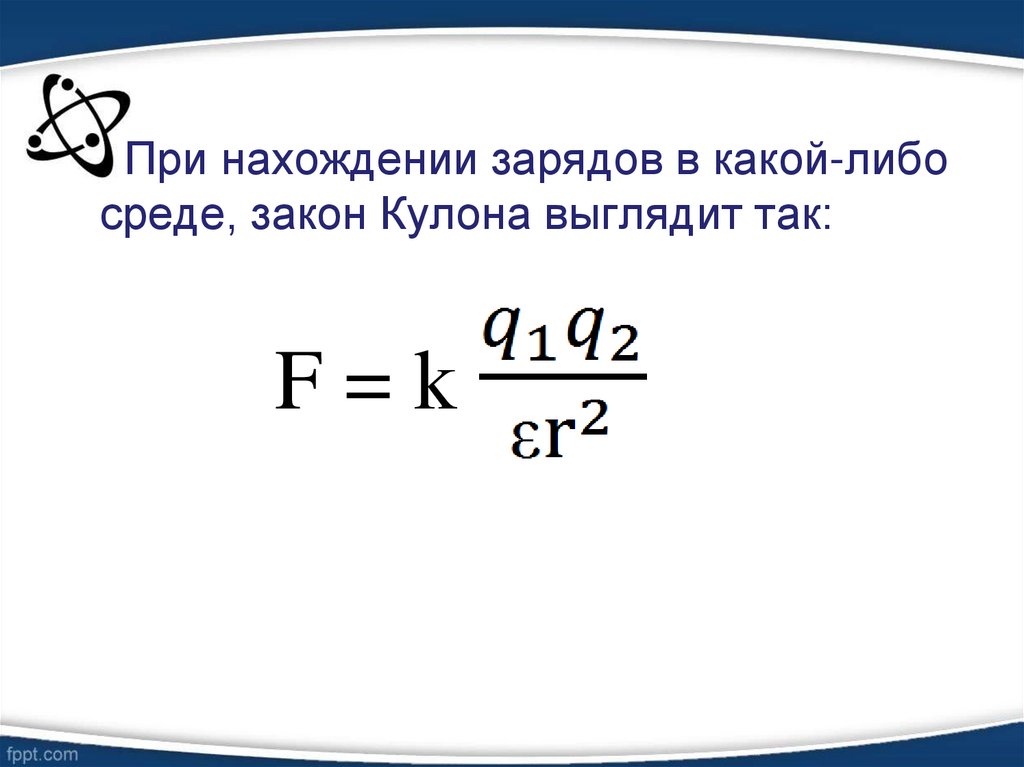 При нахождении зарядов в какой-либосреде, закон Кулона выглядит так: