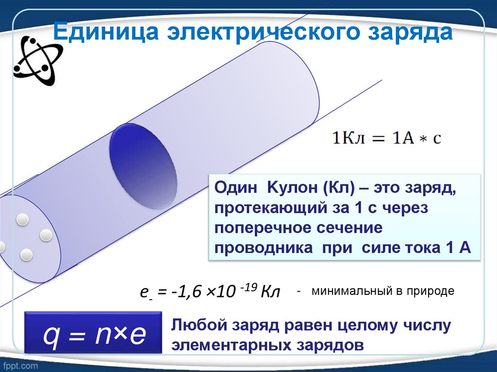 Один Kулон (Кл) – это заряд,протекающий за 1 с через