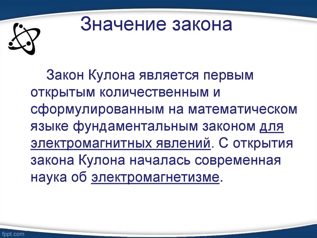 Закон Кулона является первымоткрытым количественным и