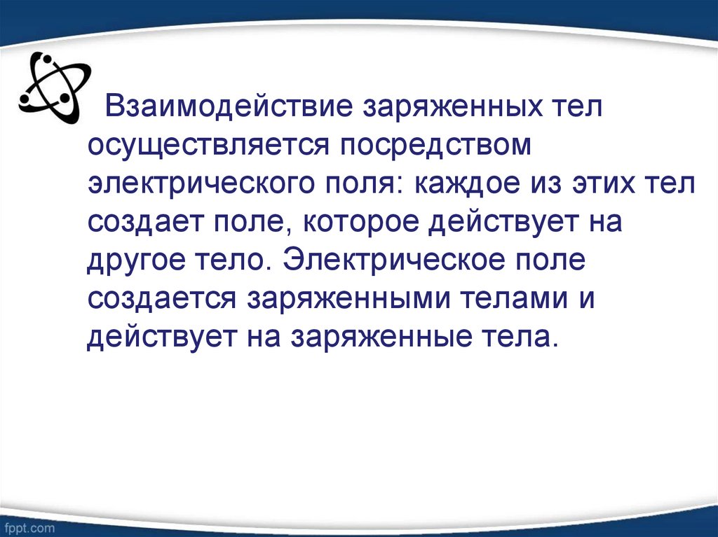 Взаимодействие заряженных телосуществляется посредством