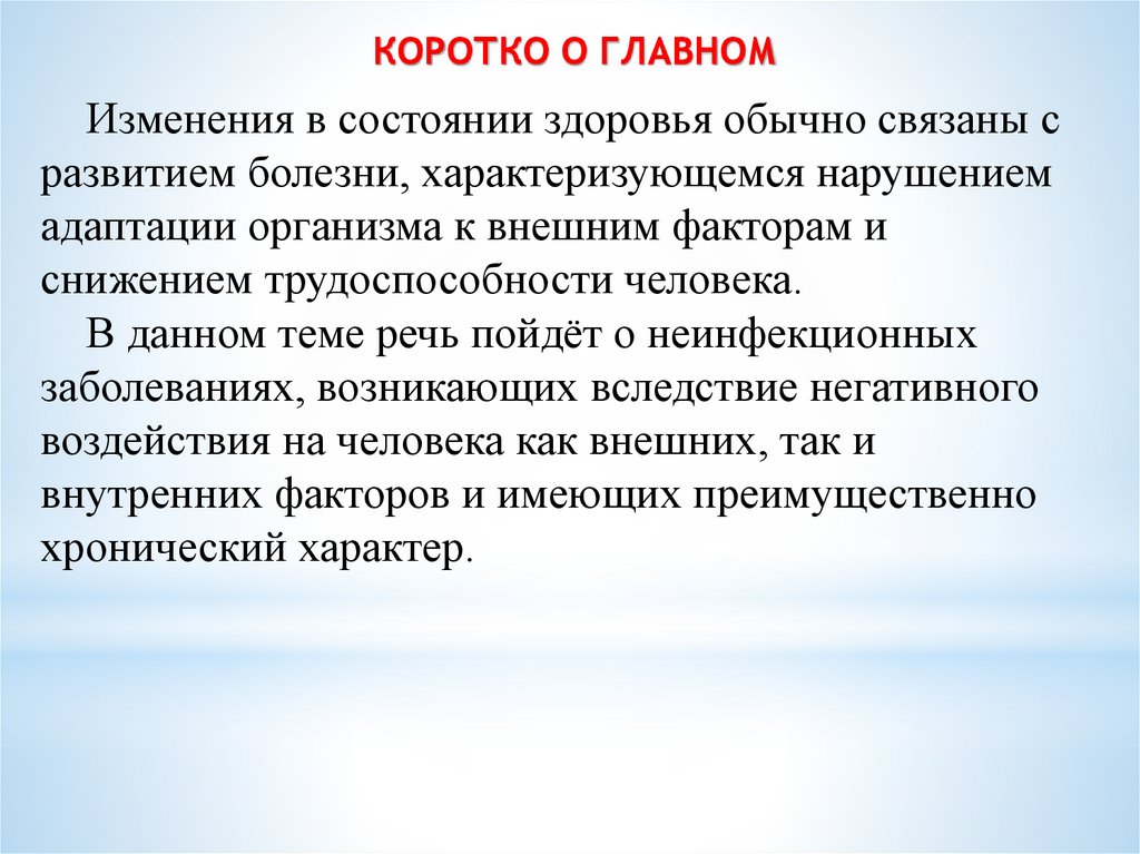 КОРОТКО О ГЛАВНОМИзменения в состоянии здоровья обычно связаны с