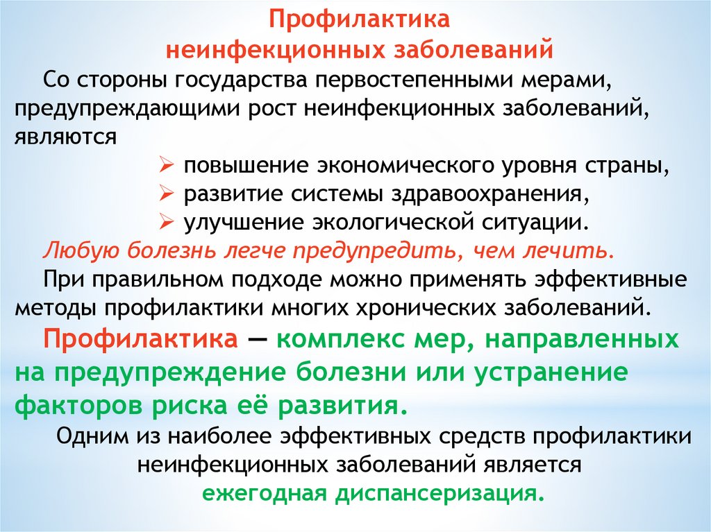 • О методах профилактики неинфекционных болезней.