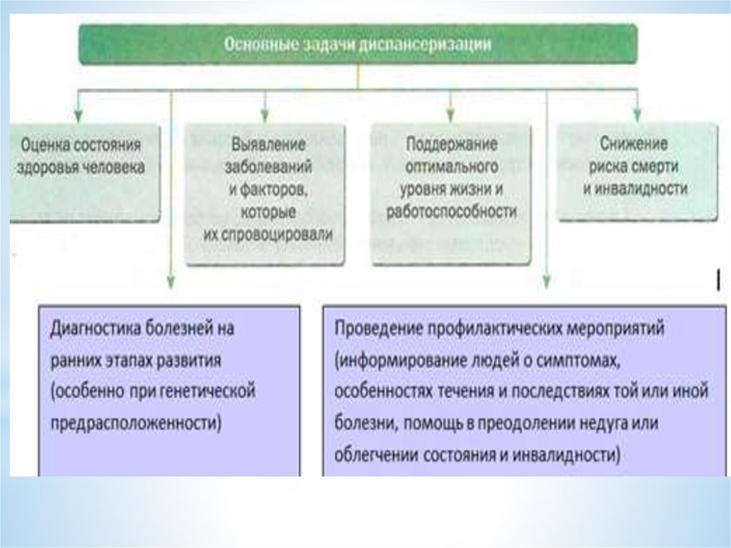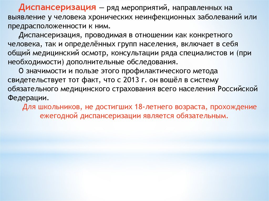 Диспансеризация — ряд мероприятий, направленных навыявление у человека хронических неинфекционных заболеваний или