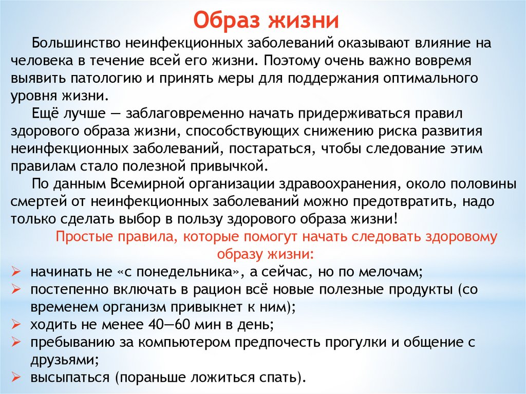 неинфекционных заболеваний, постараться, чтобы следование этим