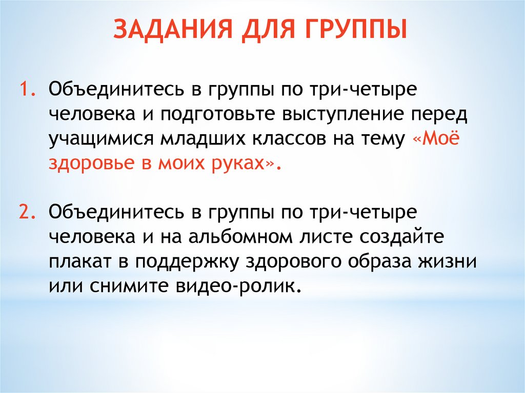 ЗАДАНИЯ ДЛЯ ГРУППЫ1. Объединитесь в группы по три-четыре