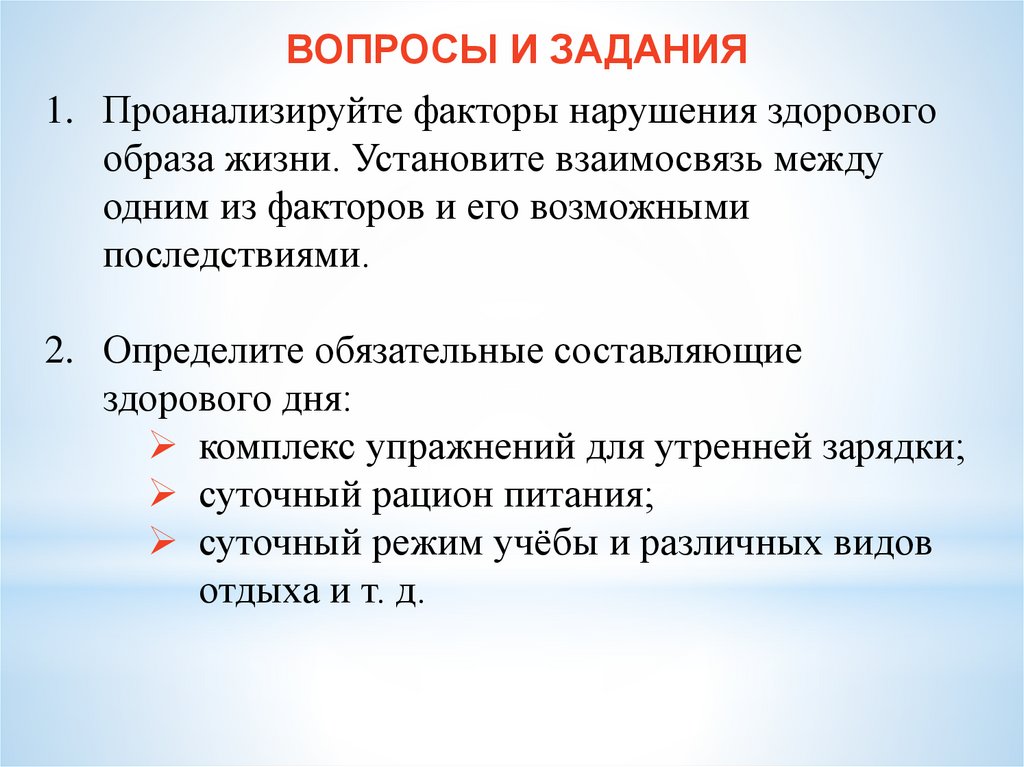 ВОПРОСЫ И ЗАДАНИЯ1. Проанализируйте факторы нарушения здорового