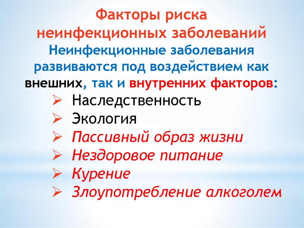 Факторы рисканеинфекционных заболеваний