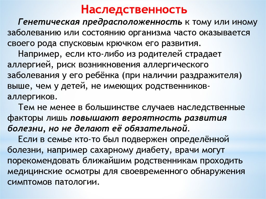 НаследственностьГенетическая предрасположенность к тому или иному