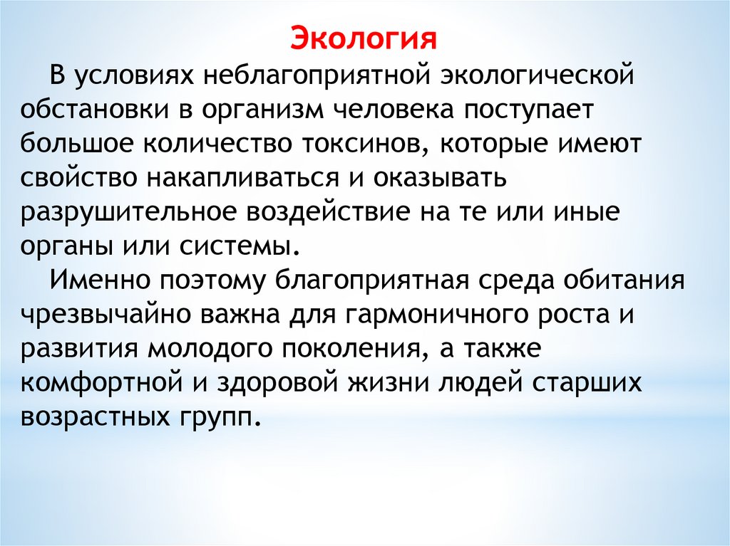 ЭкологияВ условиях неблагоприятной экологической