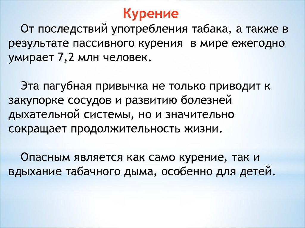 КурениеОт последствий употребления табака, а также в