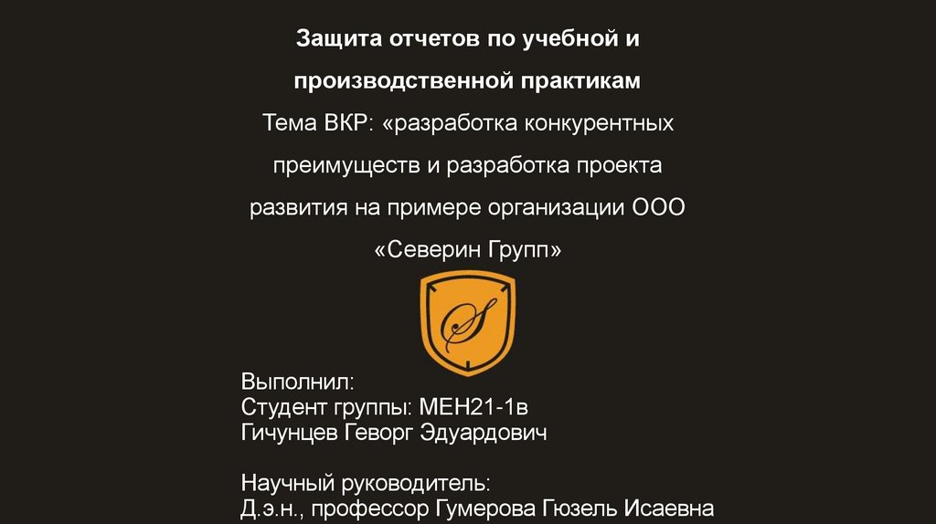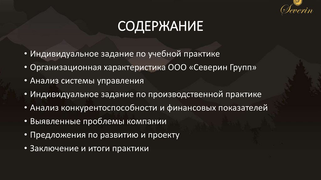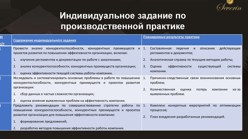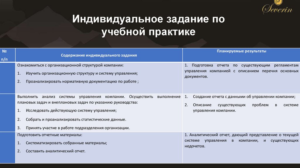 • Индивидуальное задание по учебной практике• Организационная характеристика ООО «Северин Групп»