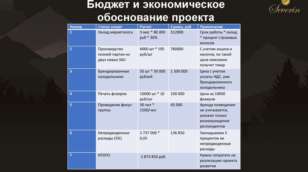 Бюджет и экономическоеобоснование проекта
