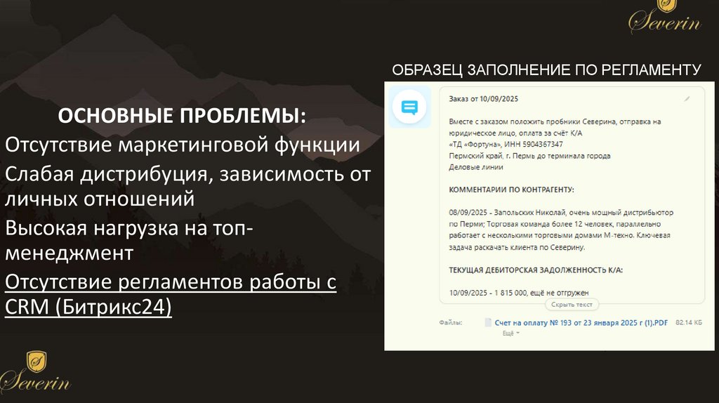 • Выявленные проблемы компании