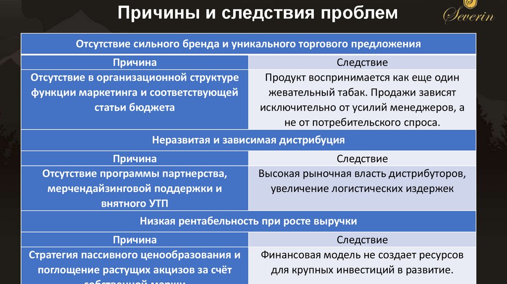 Причины и следствия проблемОтсутствие сильного бренда и уникального торгового предложения
