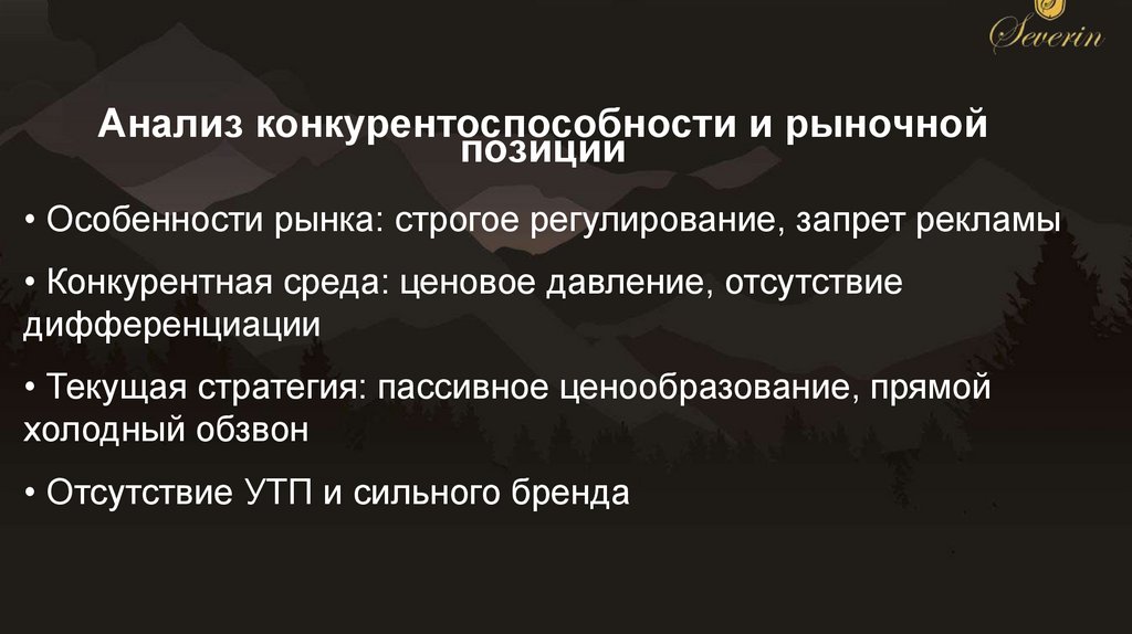 • Конкурентная среда: ценовое давление, отсутствие