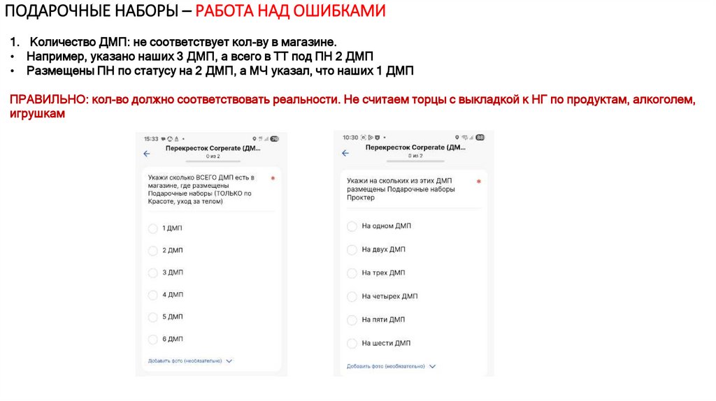 ПОДАРОЧНЫЕ НАБОРЫ – РАБОТА НАД ОШИБКАМИ1. Количество ДМП: не соответствует кол-ву в магазине.