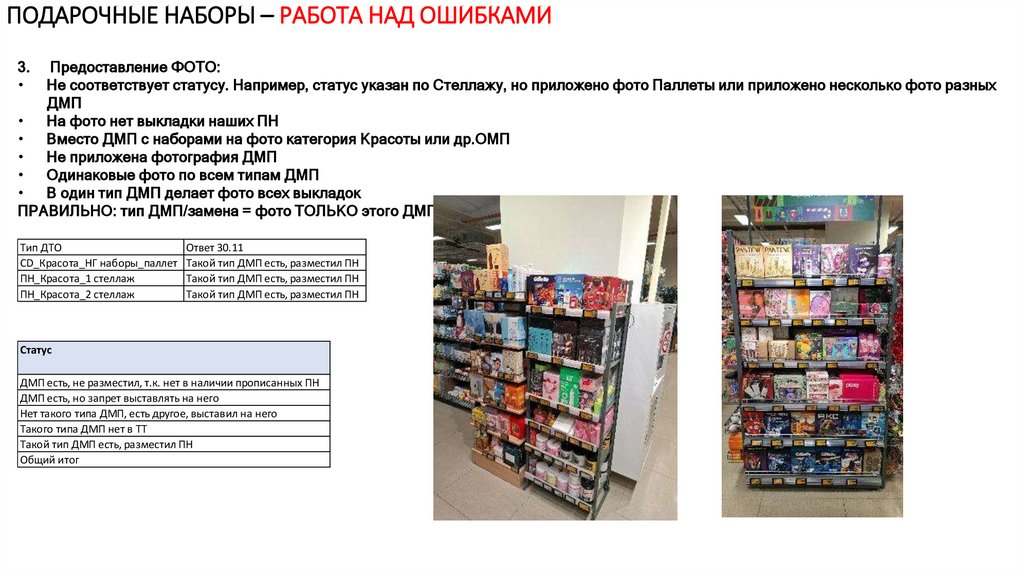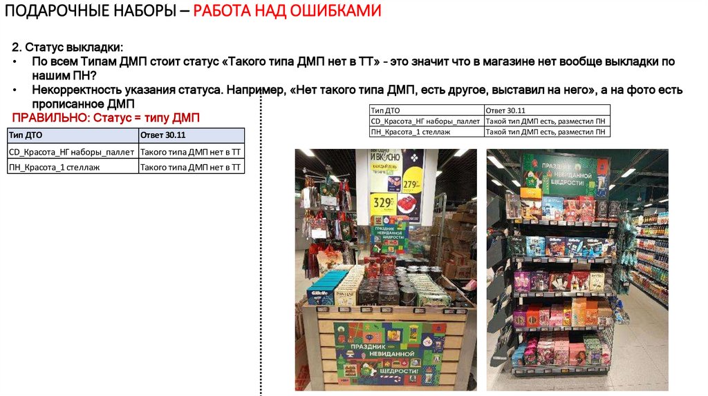 ПОДАРОЧНЫЕ НАБОРЫ – РАБОТА НАД ОШИБКАМИ2. Статус выкладки: