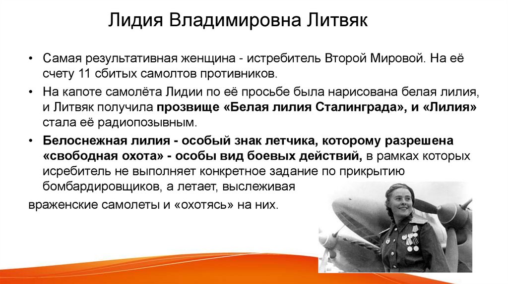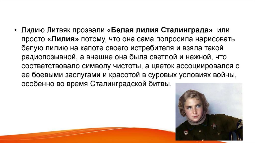 и Литвяк получила прозвище «Белая лилия Сталинграда», и «Лилия»