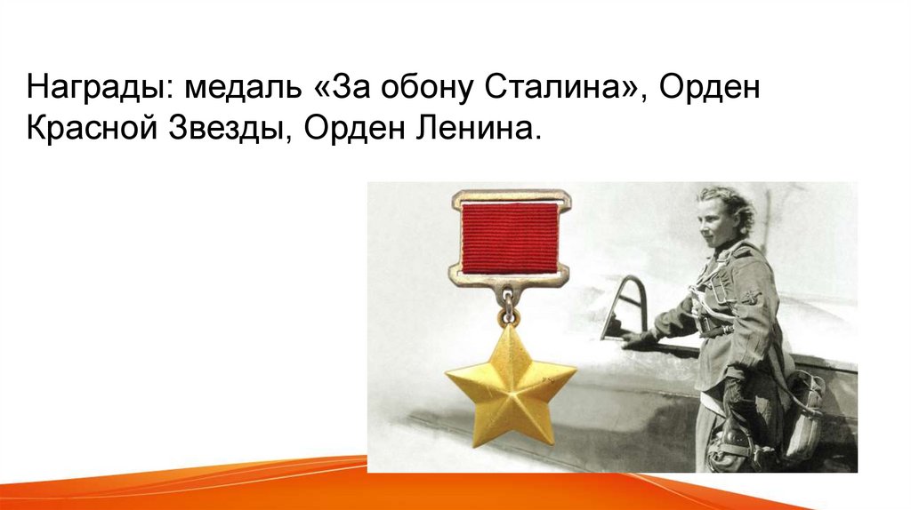 Награды: медаль «За обону Сталина», ОрденКрасной Звезды, Орден Ленина.