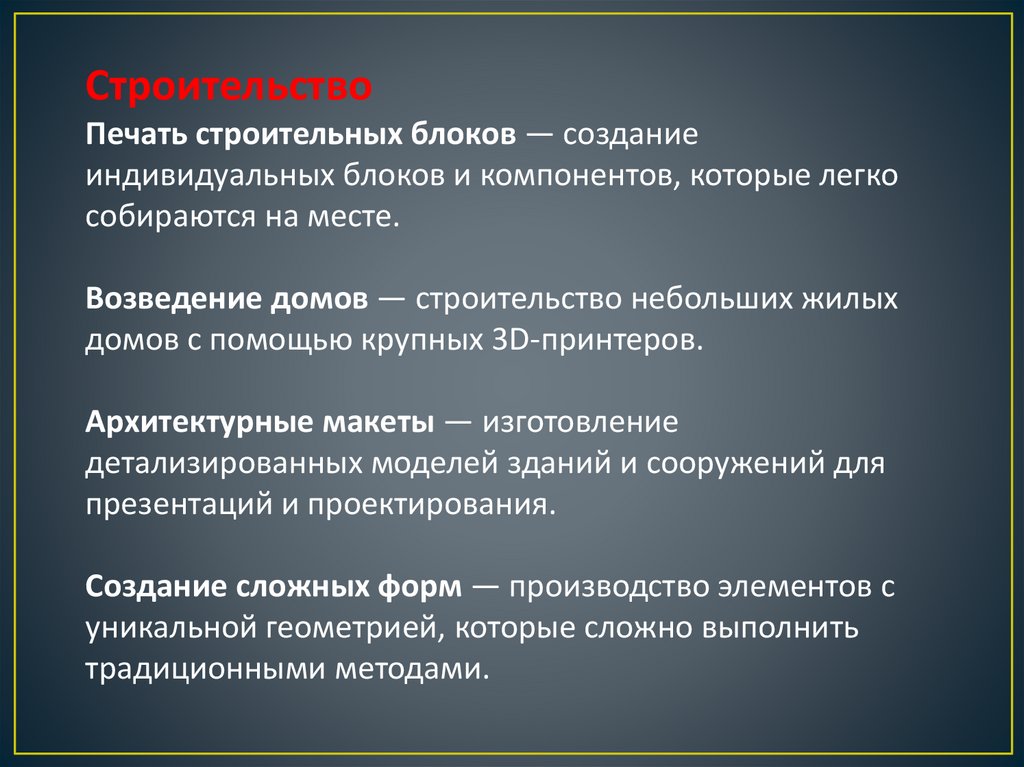 домов с помощью крупных 3D-принтеров.