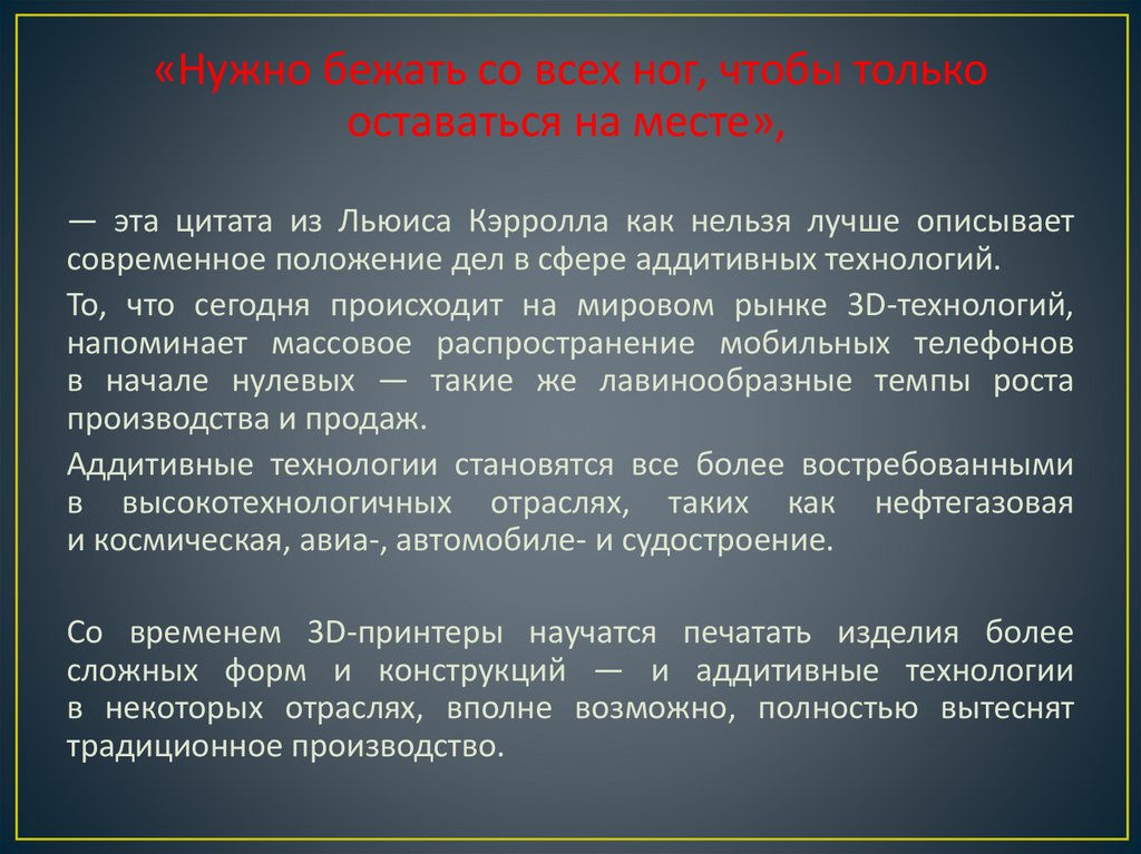 современное положение дел в сфере аддитивных технологий.