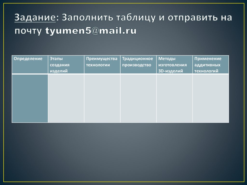 26. Задание: Заполнить таблицу и отправить на почту tyumen5@mail.ru