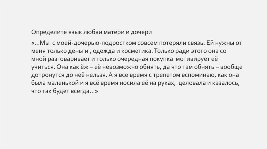 Определите язык любви матери и дочери«…Мы с моей-дочерью-подростком совсем потеряли связь. Ей нужны от