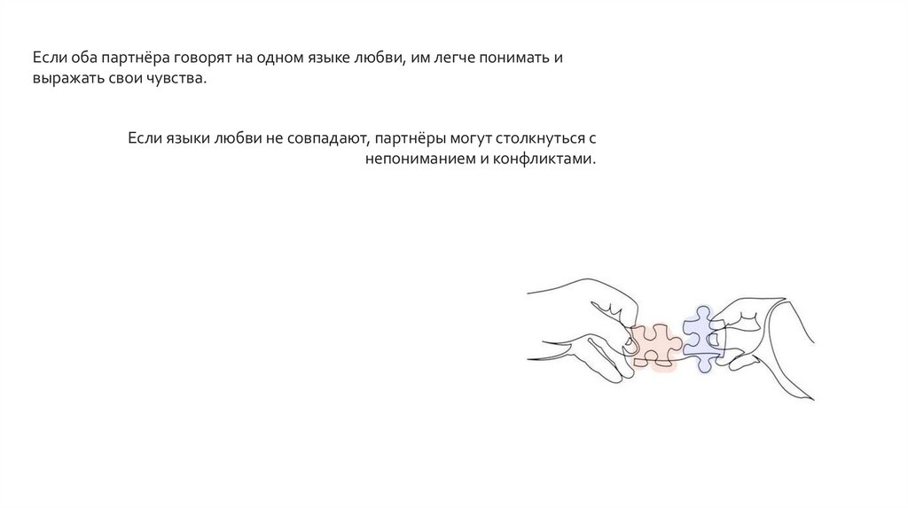 Если оба партнёра говорят на одном языке любви, им легче понимать ивыражать свои чувства.
