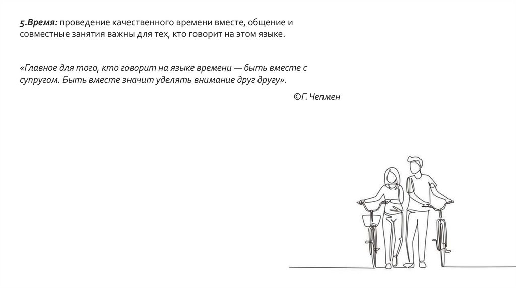 5.Время: проведение качественного времени вместе, общение исовместные занятия важны для тех, кто говорит на этом языке.