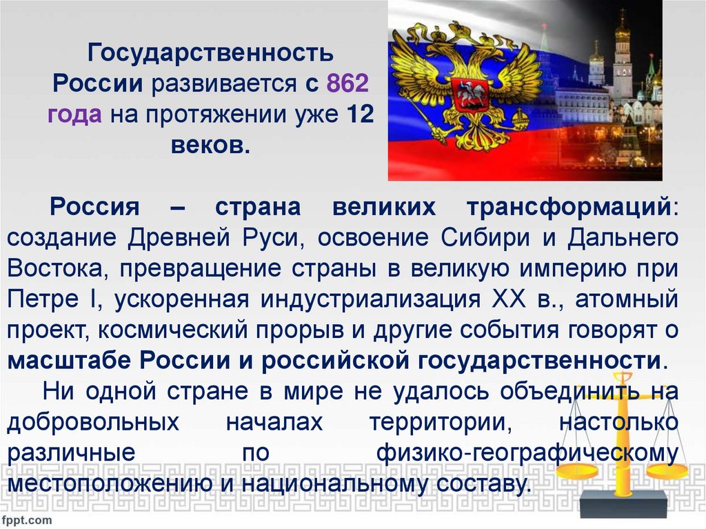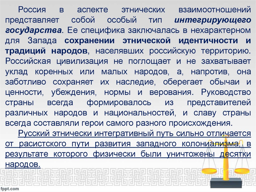 • пониманием особенностей исторического пути Российского