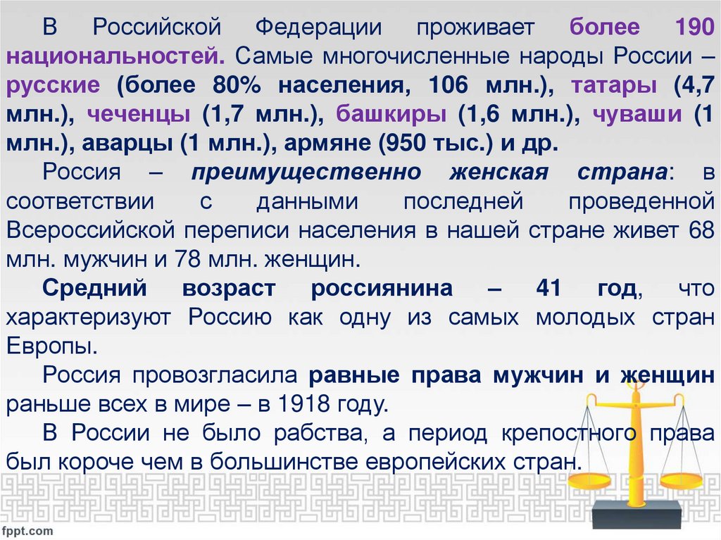 народов, населяющих Россию.