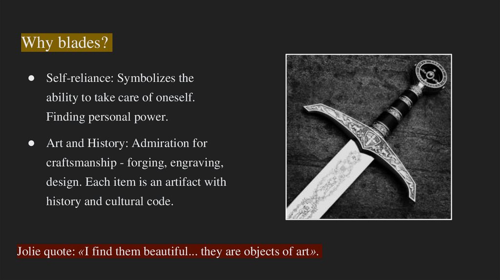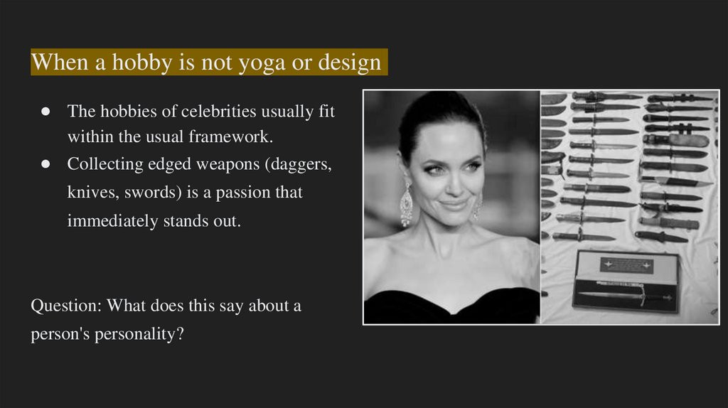 Edged weapons as a hobby of Angelina JolieArt, history, and personal power beyond stereotypes