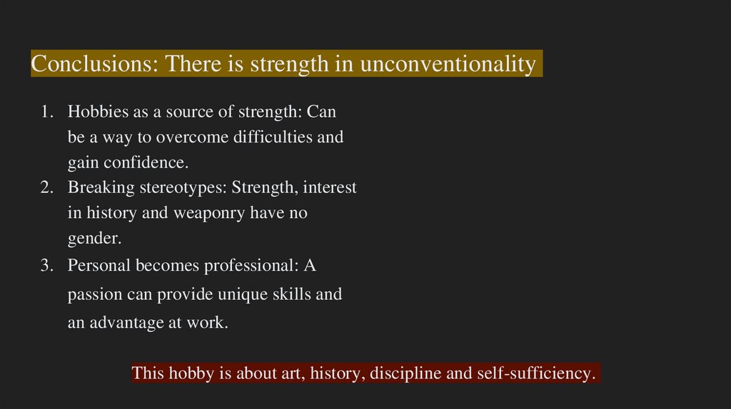Conclusions: There is strength in unconventionality1. Hobbies as a source of strength: Can