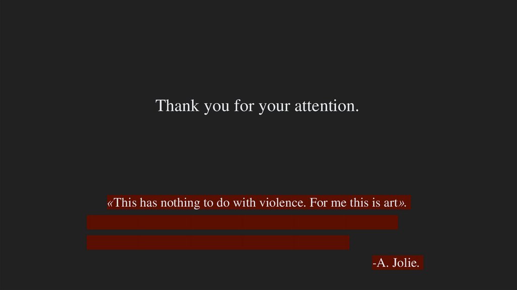 Thank you for your attention.«This has nothing to do with violence. For me this is art».