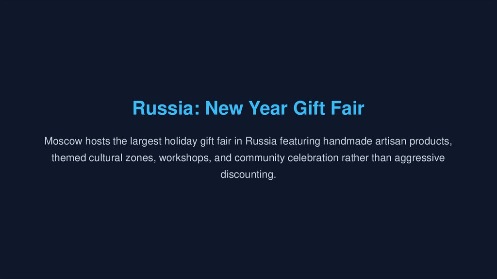 Russia: New Year Gift FairMoscow hosts the largest holiday gift fair in Russia featuring handmade artisan products,